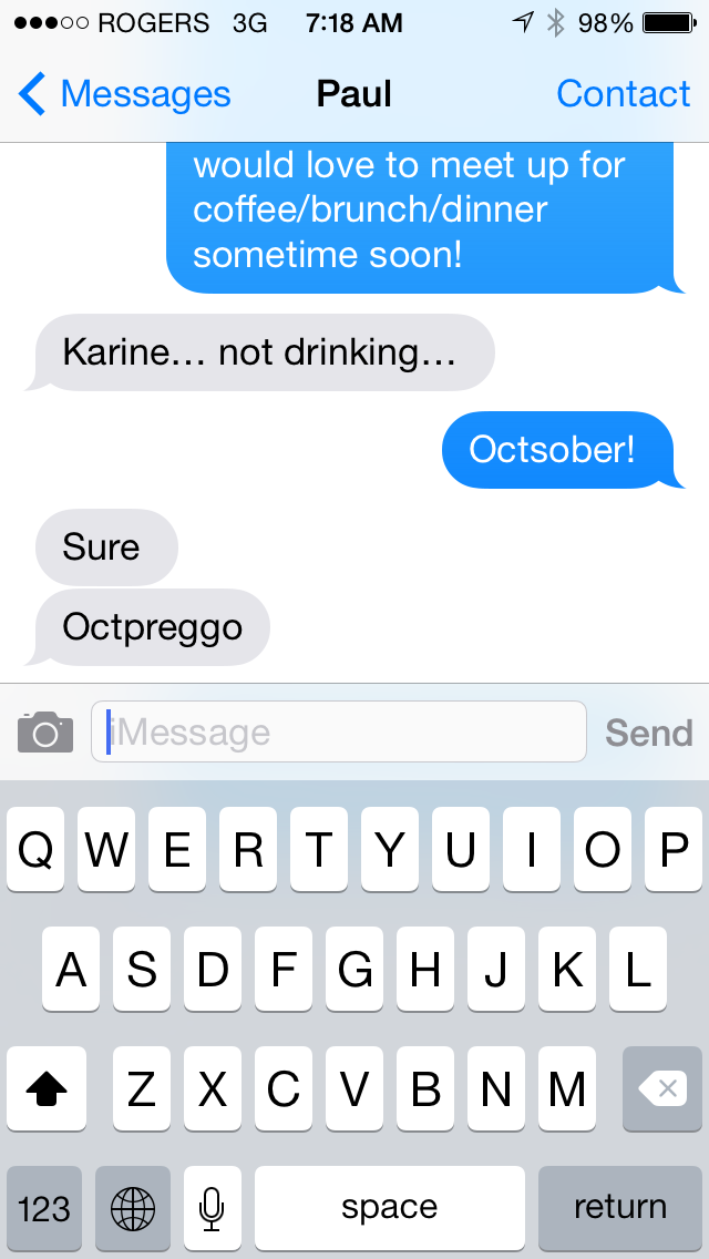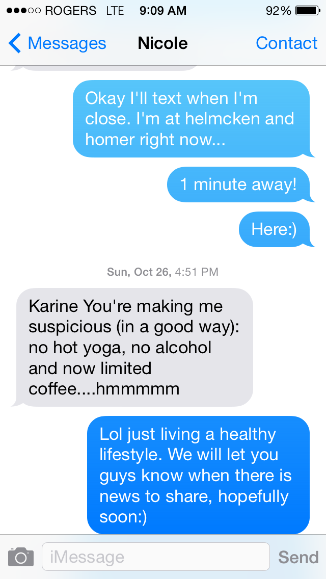 Luckily we had preemptively decided to do “Octsober” – a month of no drinking after a particularly boozy summer beginning October 1st. This was not only good news for the health of our baby, but it meant I had a good cover story for October (or at least I thought I did) for why I wasn’t drinking. If you know me, you know that I never turn down a glass of wine. As it turns out, it was pretty obvious to most people. That doesn’t mean I didn’t try to act normal. Here are some of the ridiculous little decoy tricks I tried: